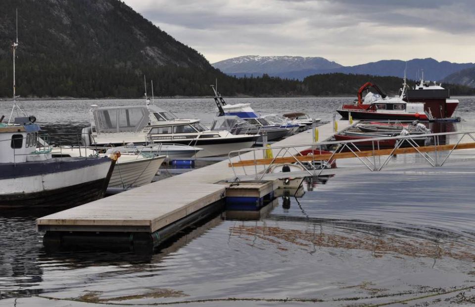 Flytebrygge på 90 meter med plass 54 båter inkl. to gjesteplasser.