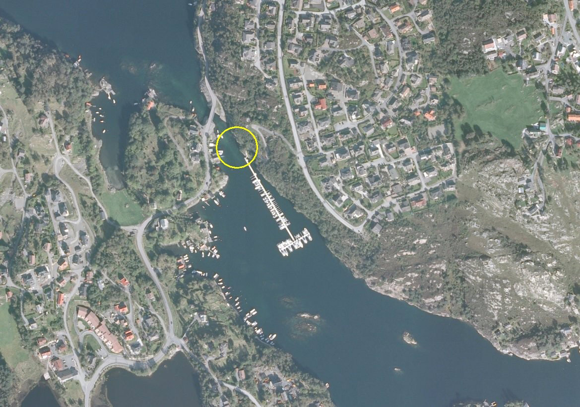 - Innseiling sør for Sotra brua. Noen grunner og trangt farvann.