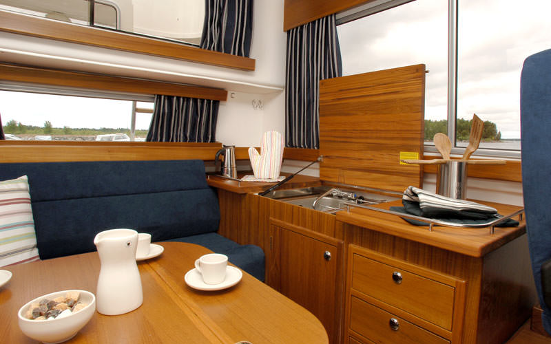 - Antall sengeplasser: 3 i forkabin og 2 i akterkabin