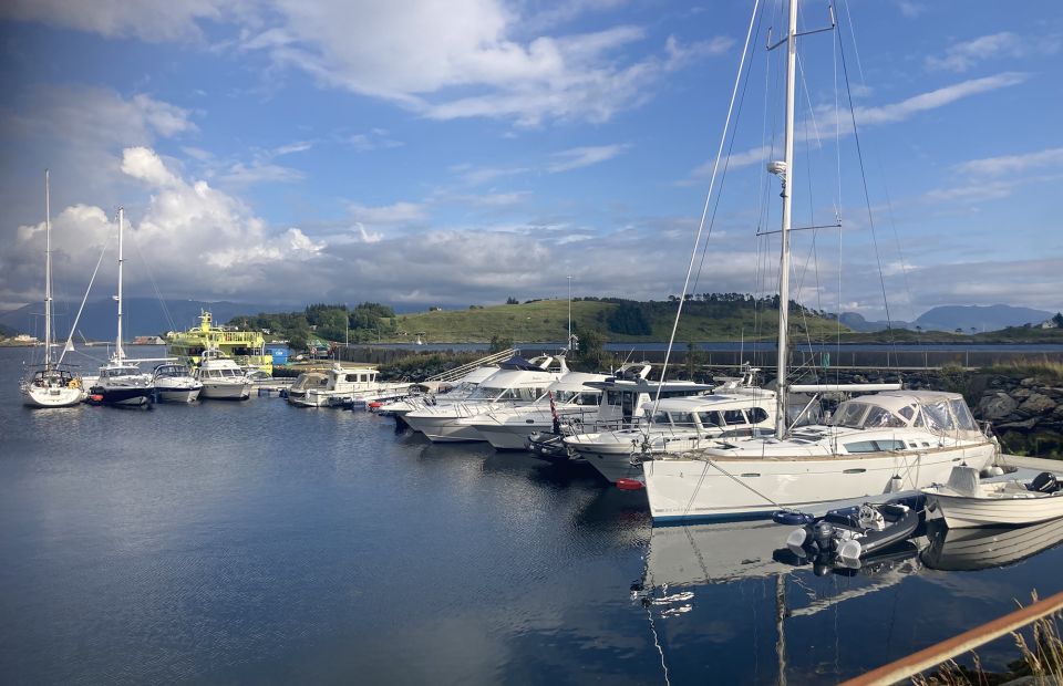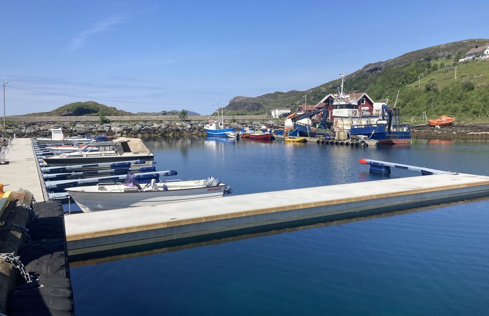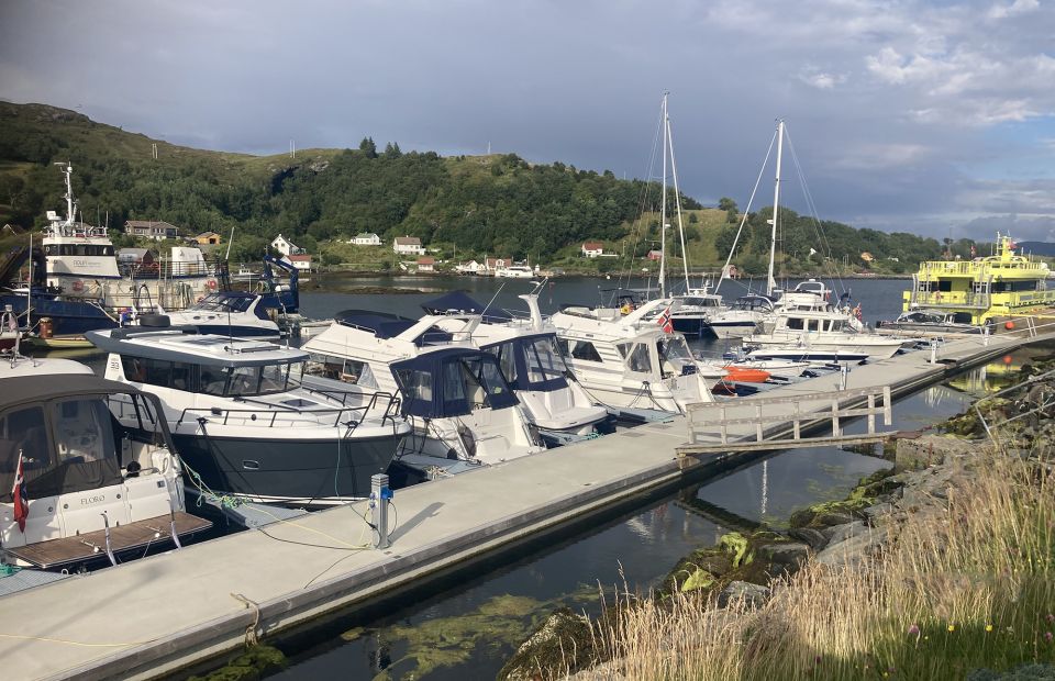 - Åpent farvann rett inn i havna. Grønn stake på styrbord side og rød markeringslys på gjestebrygge.