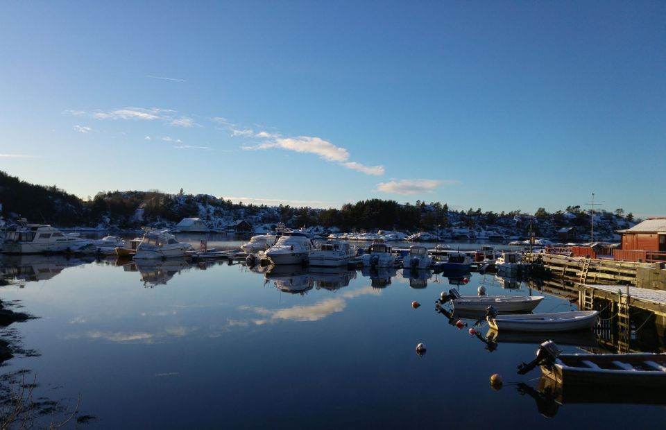 - Innseiling på anbefalt rute på kartet vest for ferjeleiet. Vær obs på rød stake på babord side etter Hovdaholmen
